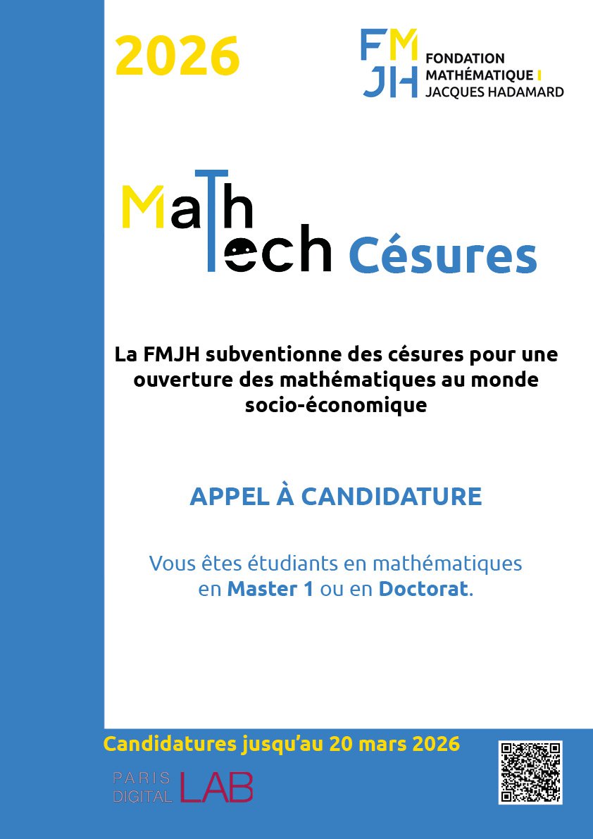 Ce dispositif s’adresse à des étudiant(e)s inscrit(e)s dans la mention de Master Mathématiques et Applications co-accréditée par l’Université Paris-Saclay et l'Institut Polytechnique de Paris ou à l’École Doctorale Mathématique Hadamard (EDMH) qui ont jusqu’à présent étudié des aspects plutôt fondamentaux des mathématiques et qui souhaitent compléter, lors d’une année de césure, cette première formation par une nouvelle expérience leur permettant de comprendre et d’apprécier l’application des mathématiques au monde socio-économique, notamment au travers des nombreuses applications de l'Intelligence Artificielle.