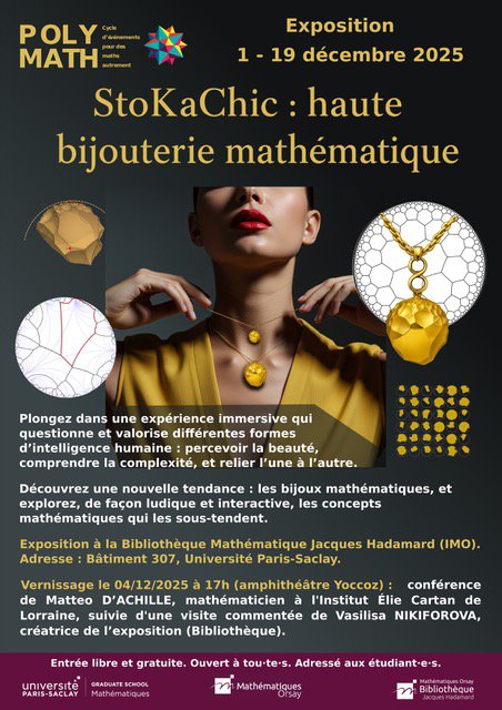 📍 StoKaChic : Haute Bijouterie Mathématique 📅 Du 1er au 19 décembre 2025 📚 Bibliothèque Mathématique Jacques Hadamard (IMO)