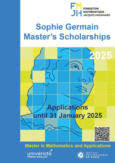 The scholarships are intended for students wishing to register for a Master's degree in "Mathematics and Applications" (M1 or M2) at the University of Paris-Saclay or the Institut Polytechnique de Paris in one of the "research" courses of this master's program, which are listed here (this list is shown in the drop-down menu of the online application form for the Sophie Germain scholarship).